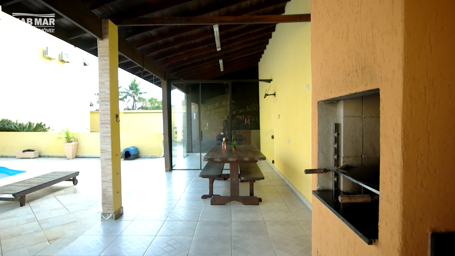 Sobrado 500m de distancia da praia, garagem com 6 vagas, sala 2 ambientes com ar condicionado, cozinha, 4 banheiros sendo 1 lavabo e 1 suíte, 3 dormitórios com sacada e ar condicionado, área de lazer com piscina e churrasqueira, hidromassagem e salão de jogos;